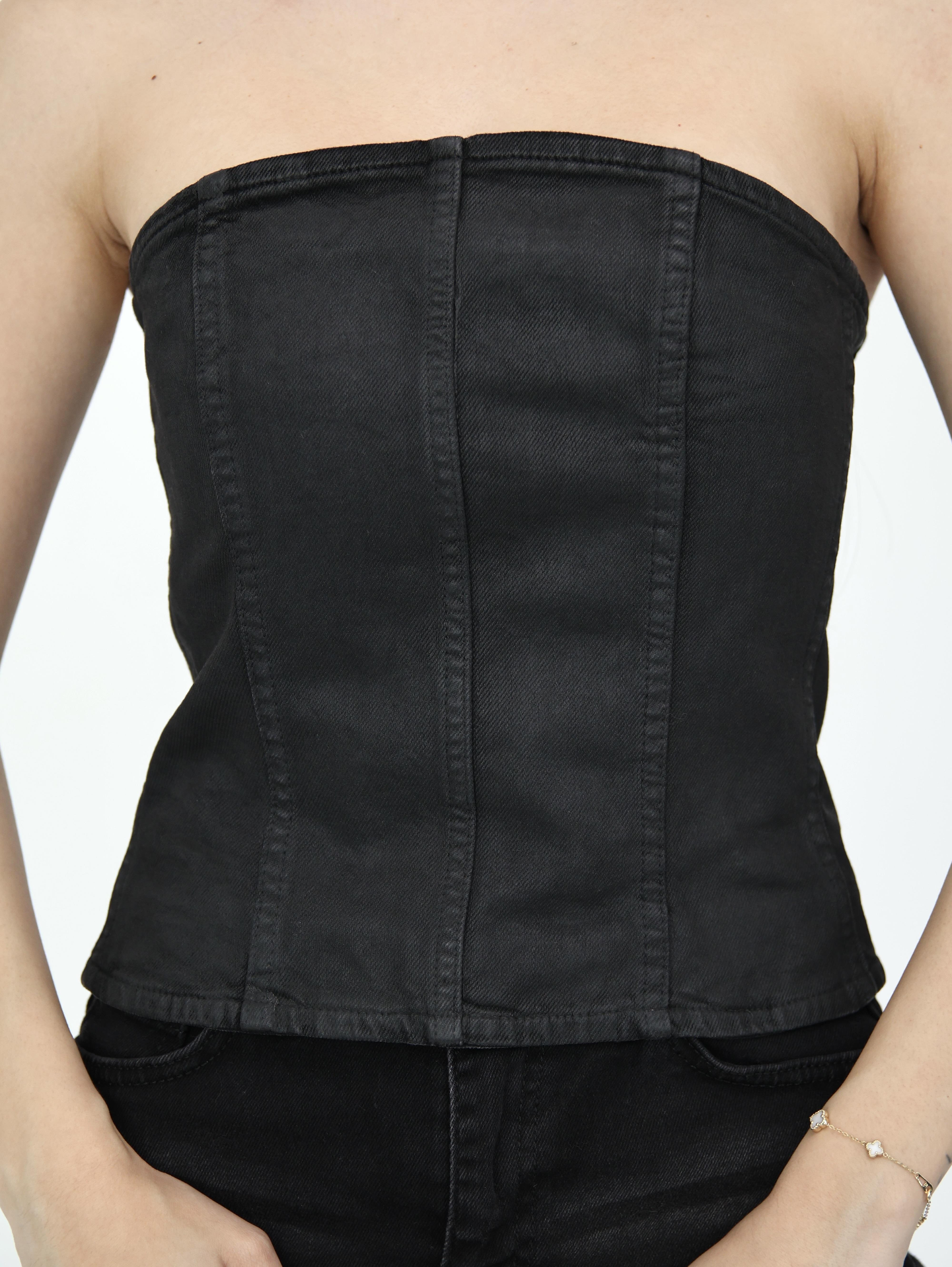 Denim Straplez Yaka Bluız