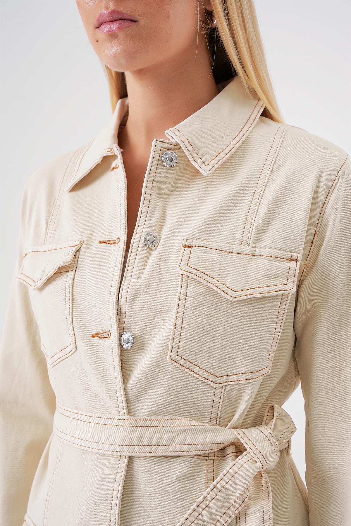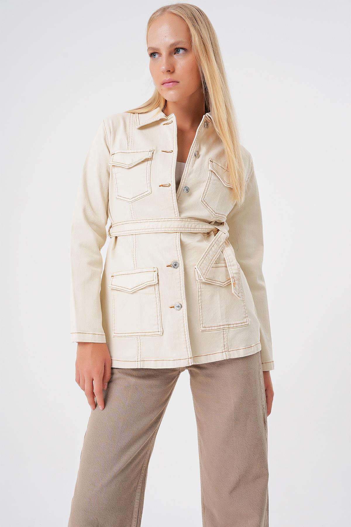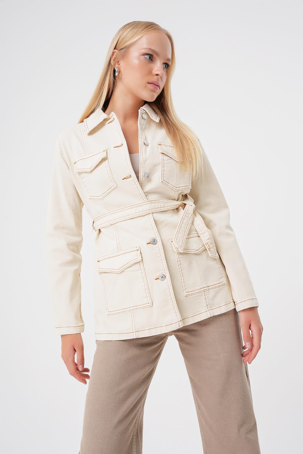 Kemerli Cep Detayli Standart Kalip Denim Ceket