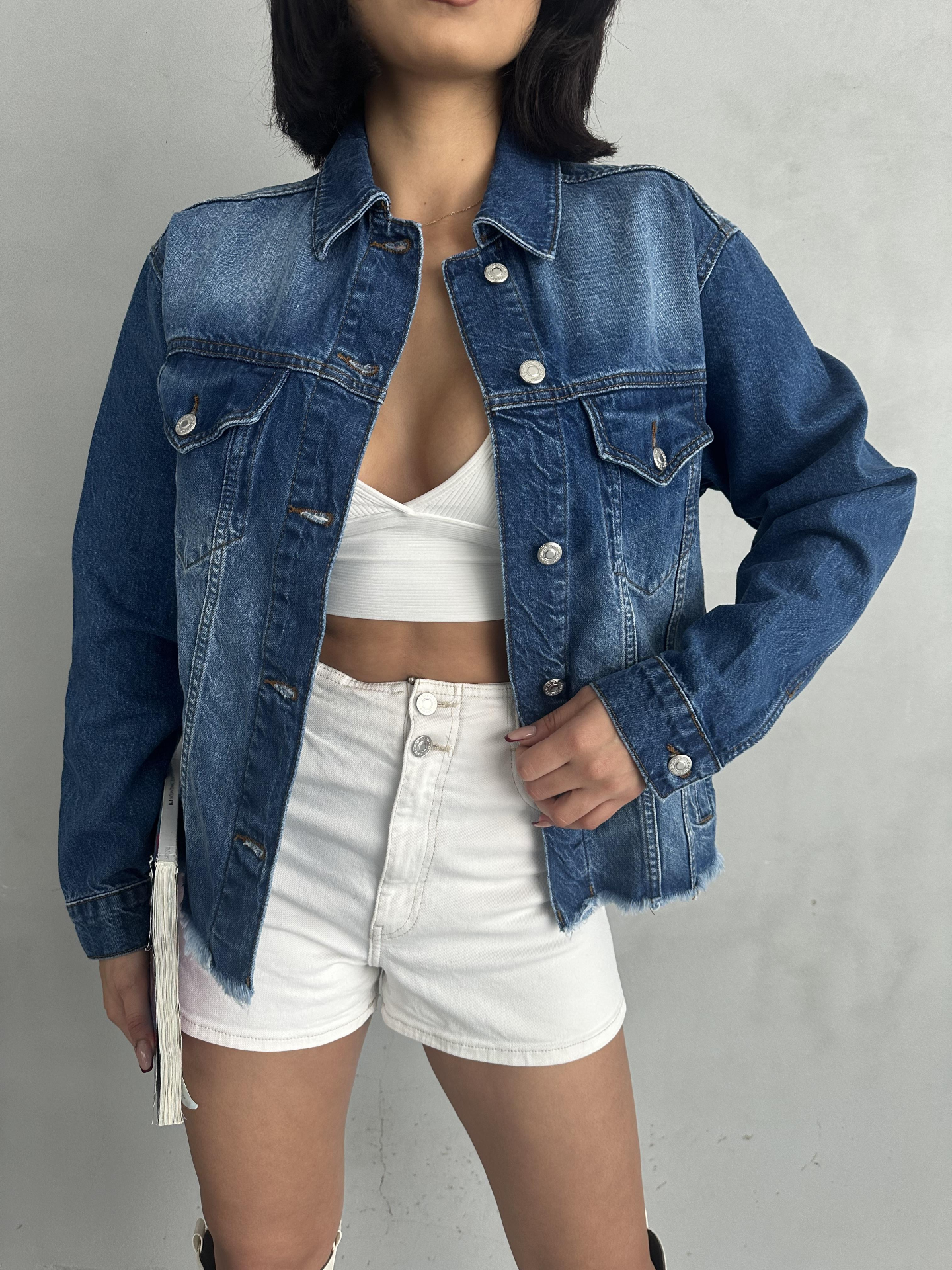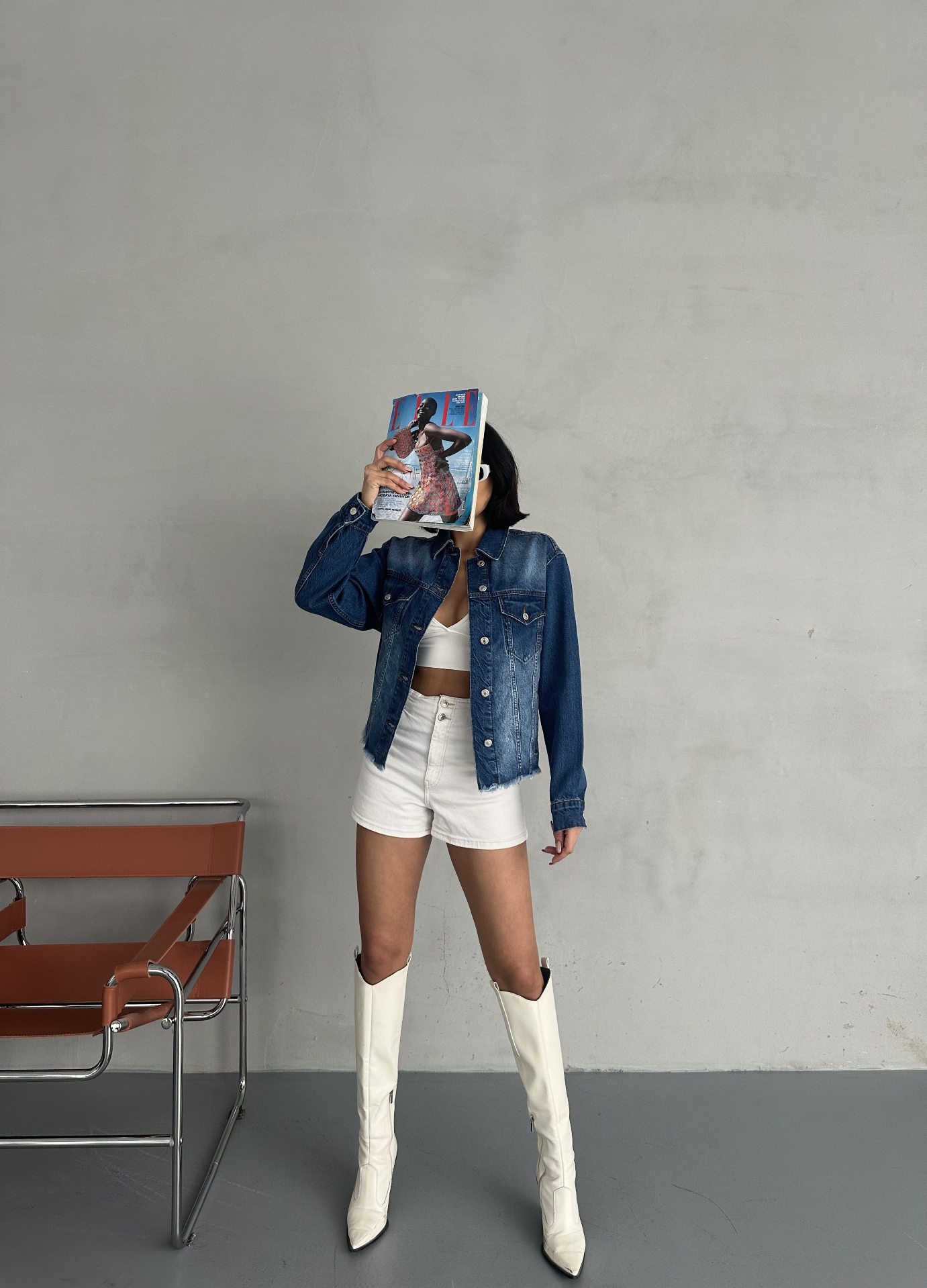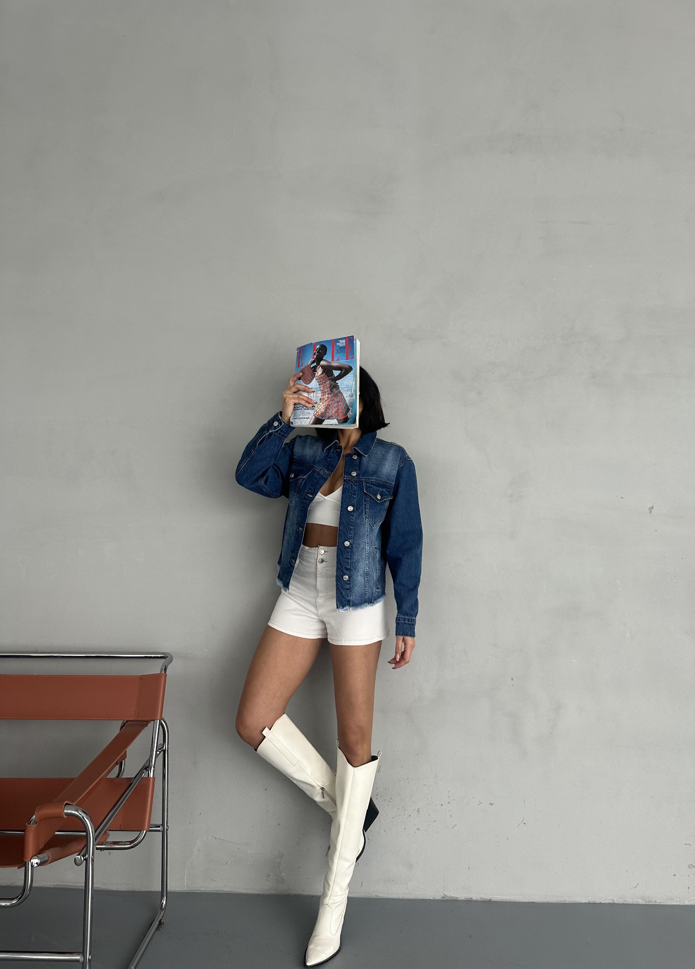Püsgüllü Cep Detaylı Kadın Jean Ceket