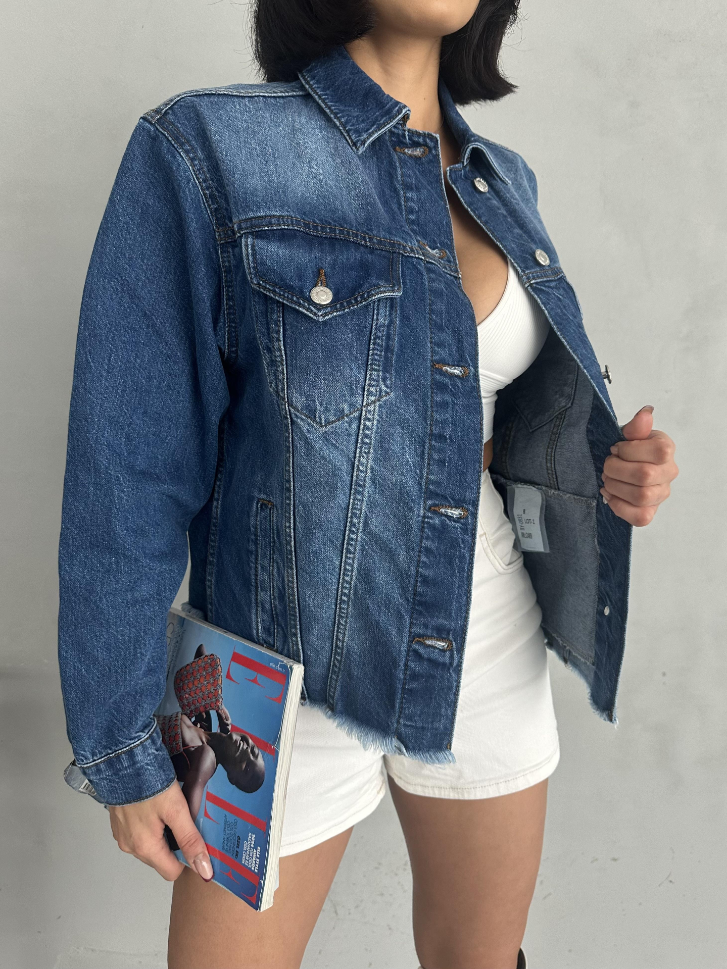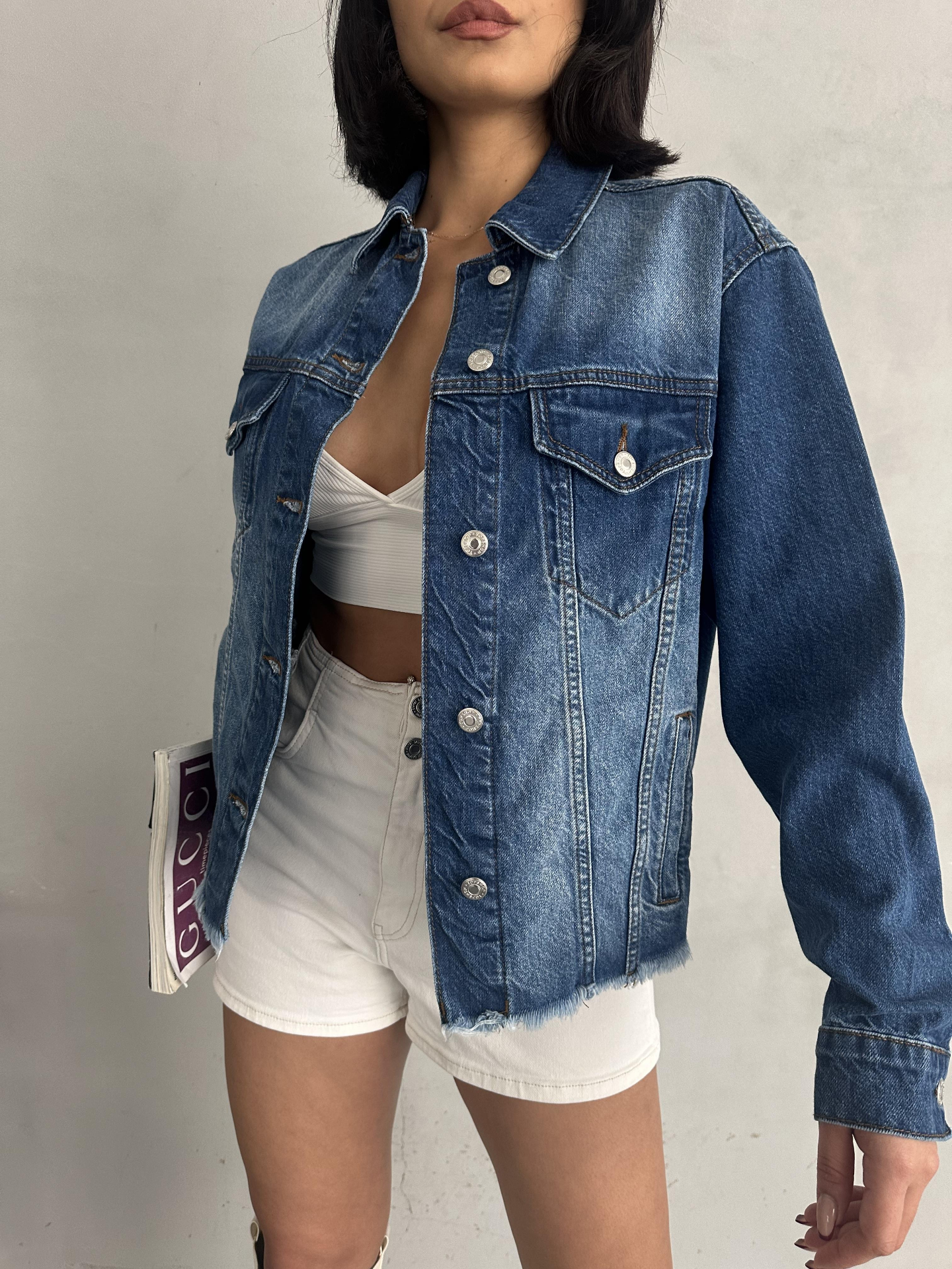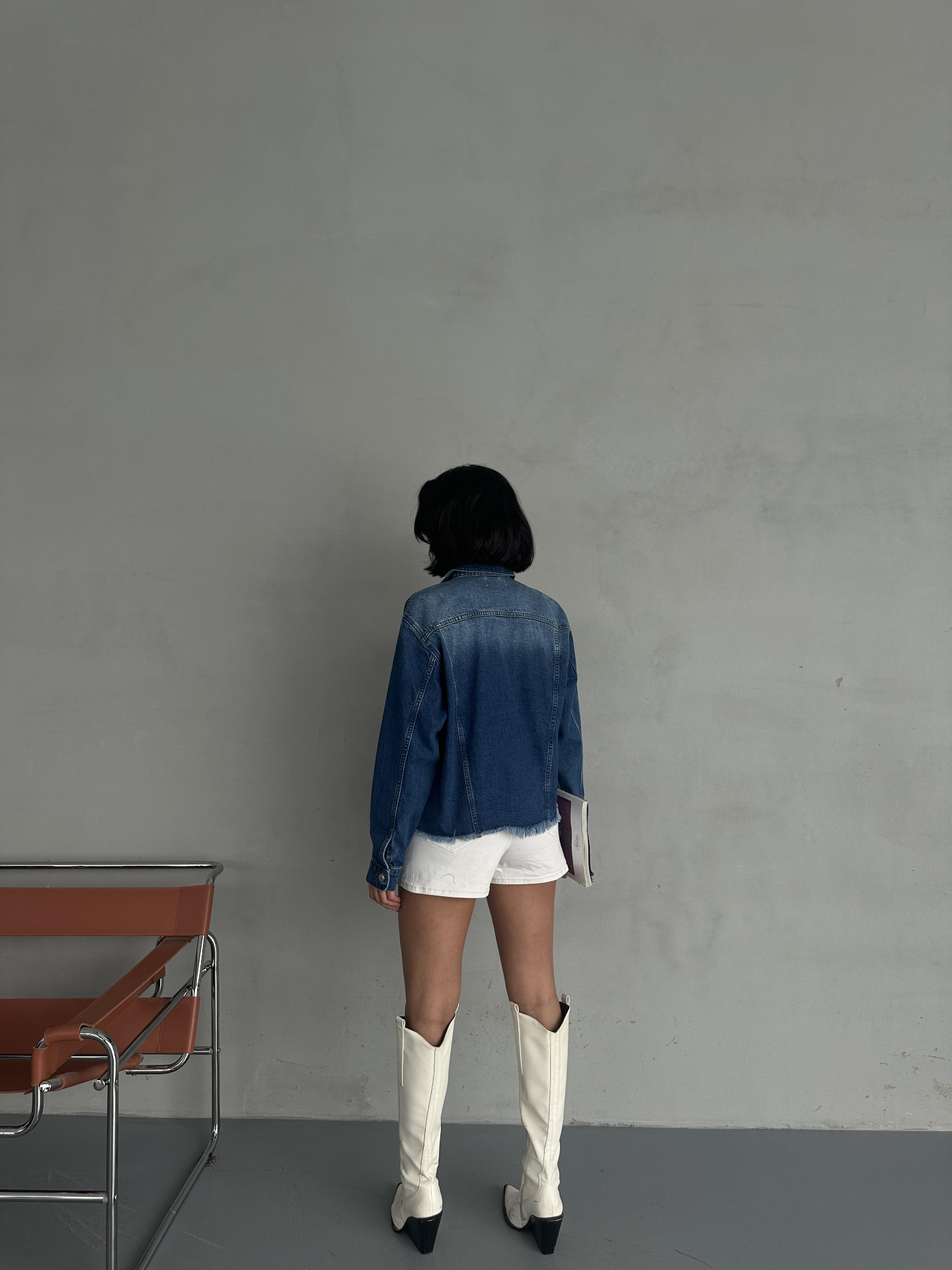 Püsgüllü Cep Detaylı Kadın Jean Ceket