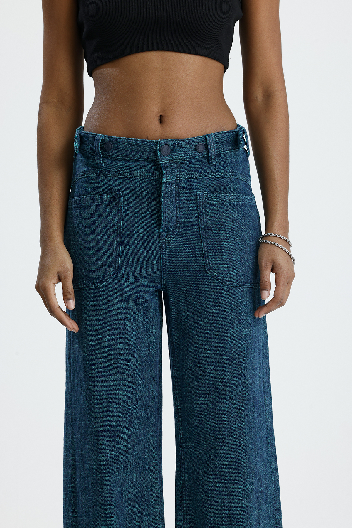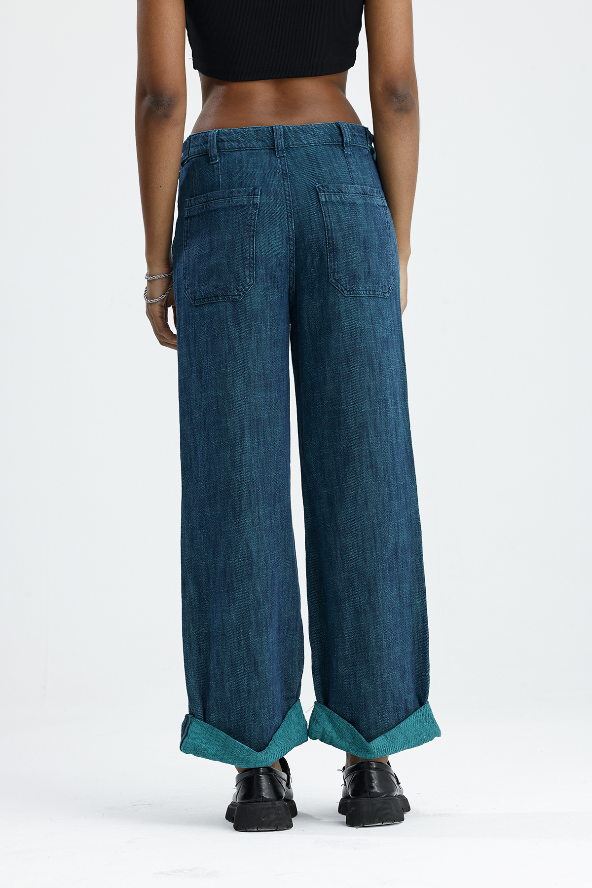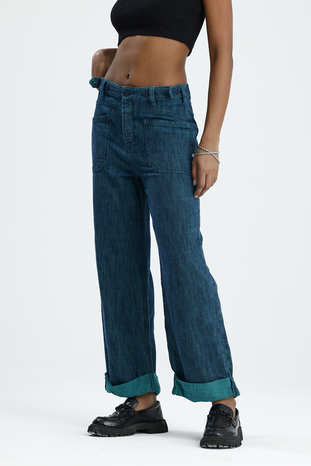 Wide Lag Kemer Düğmelı denim Jean Pantolon