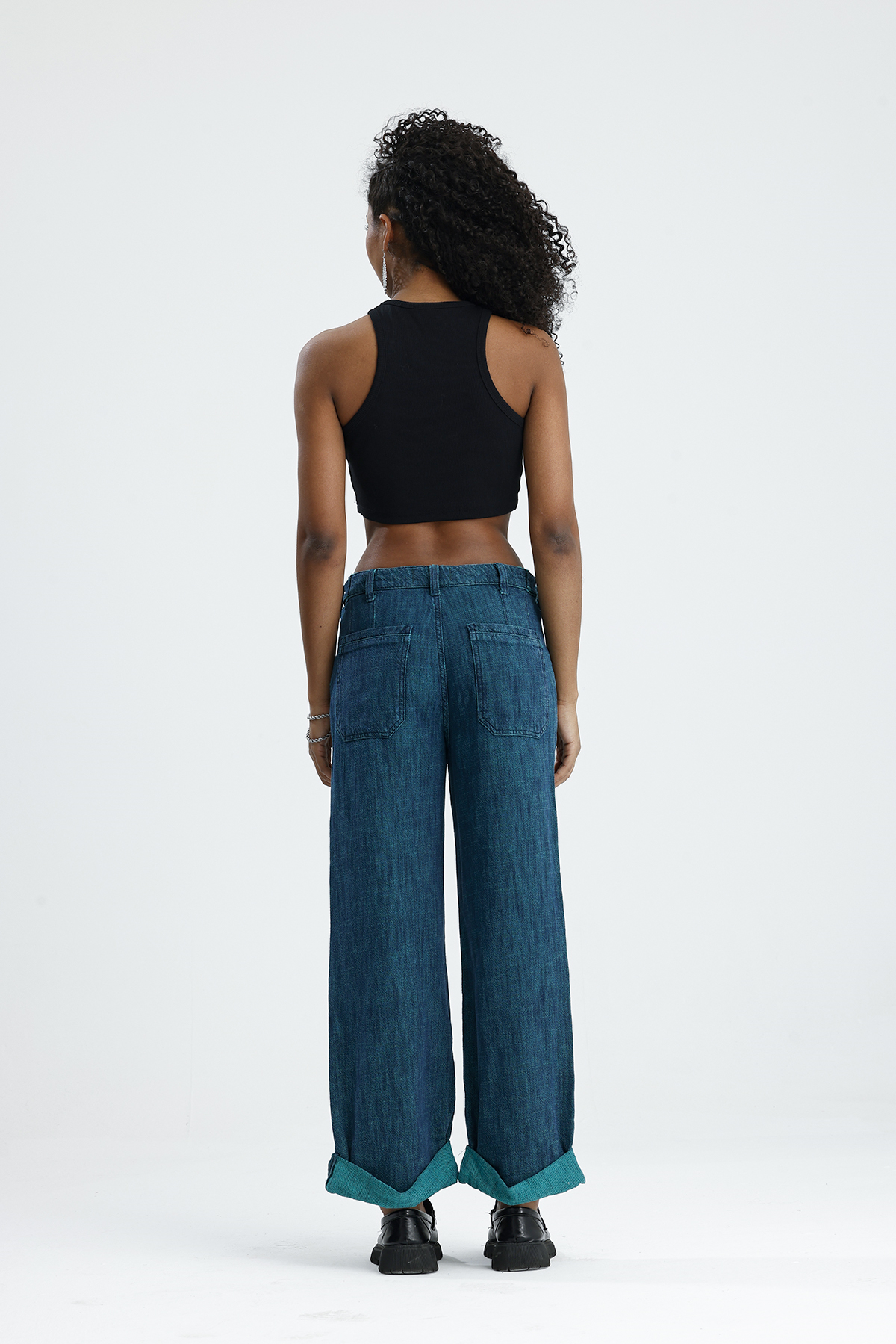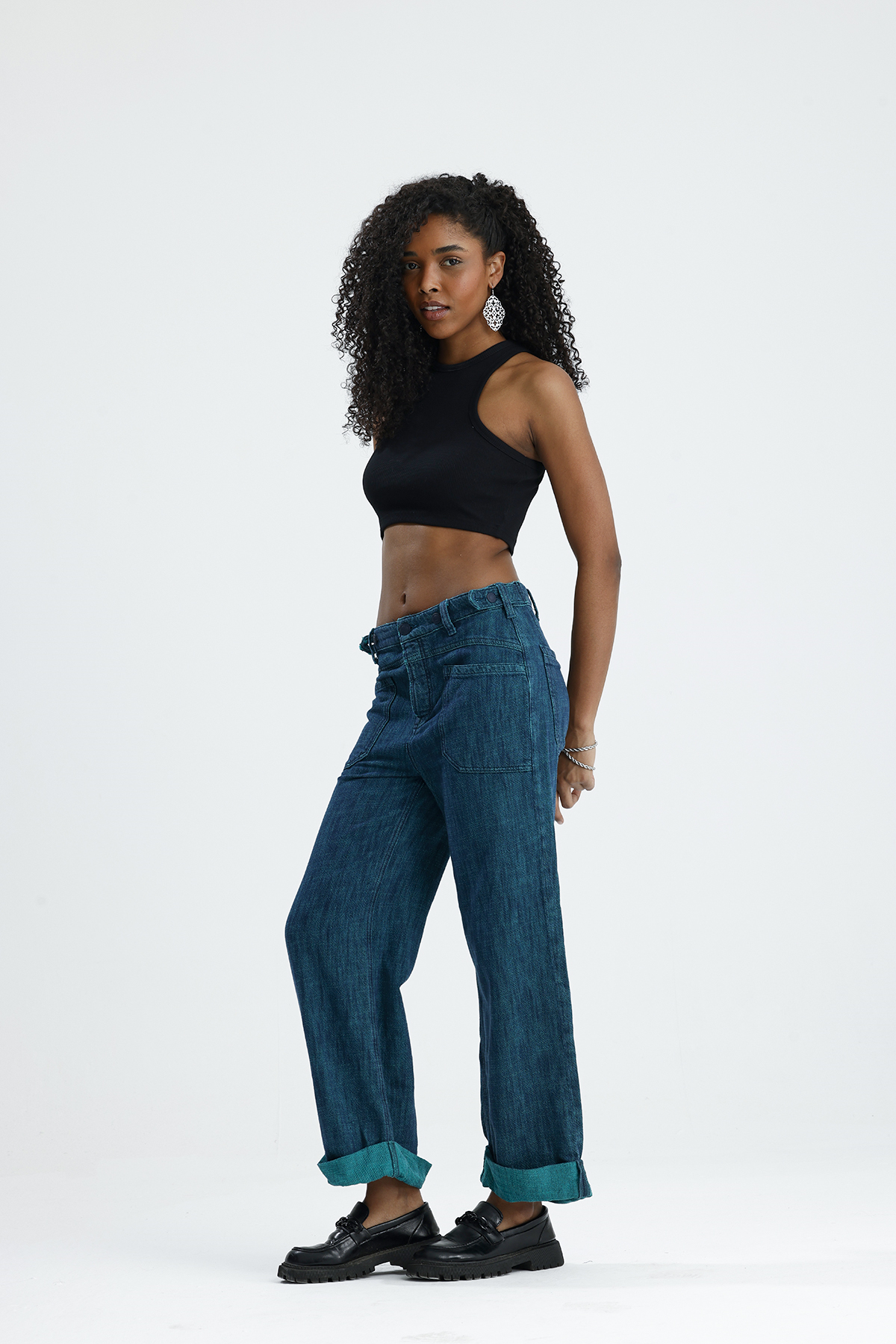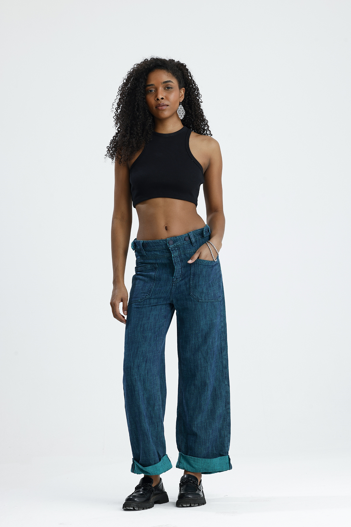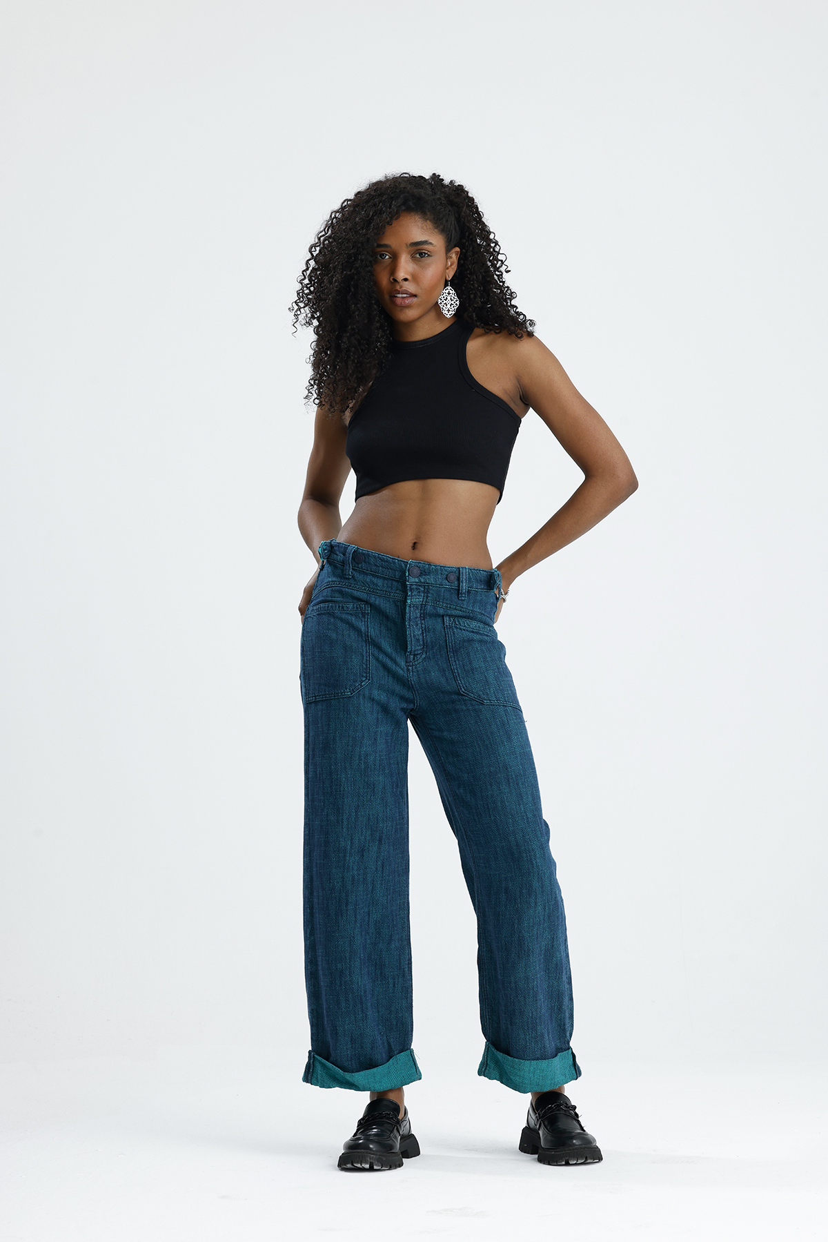 Wide Lag Kemer Düğmelı denim Jean Pantolon