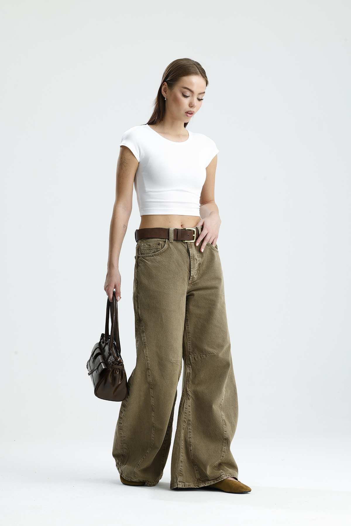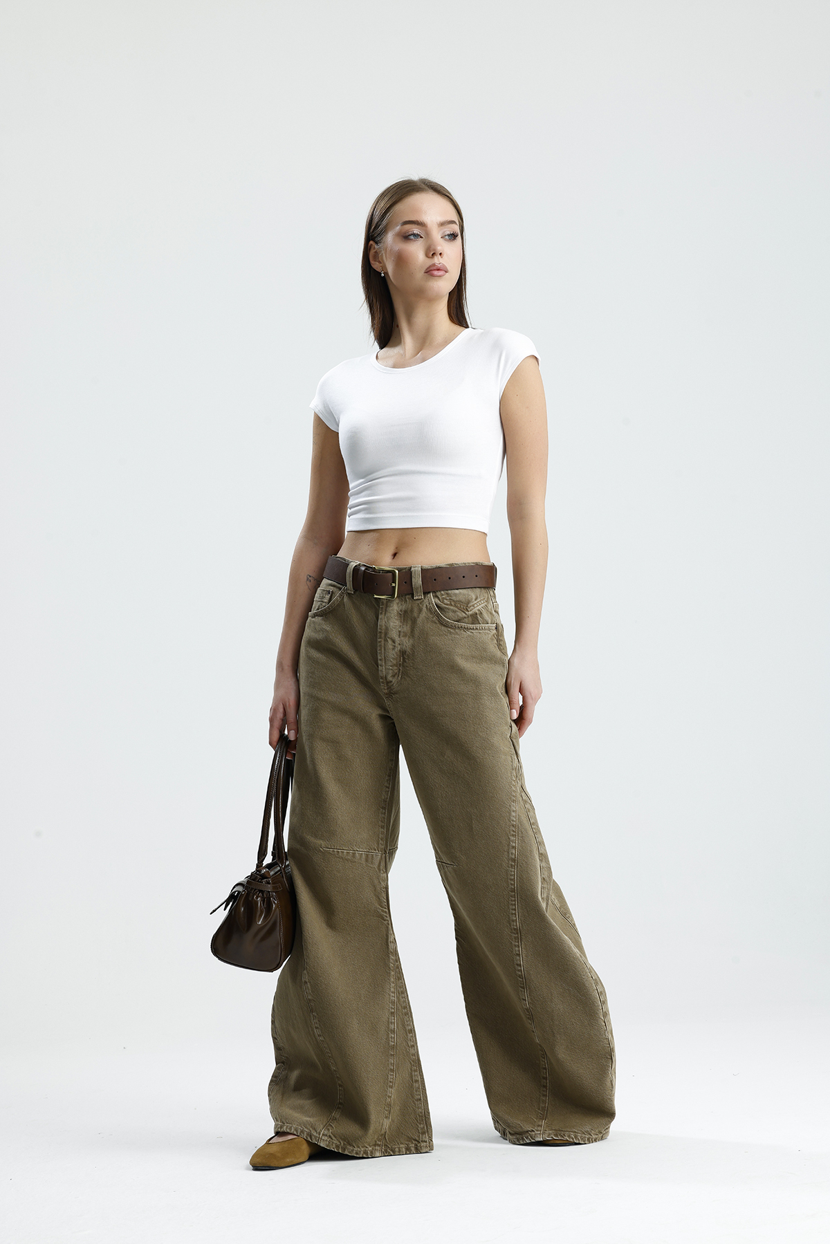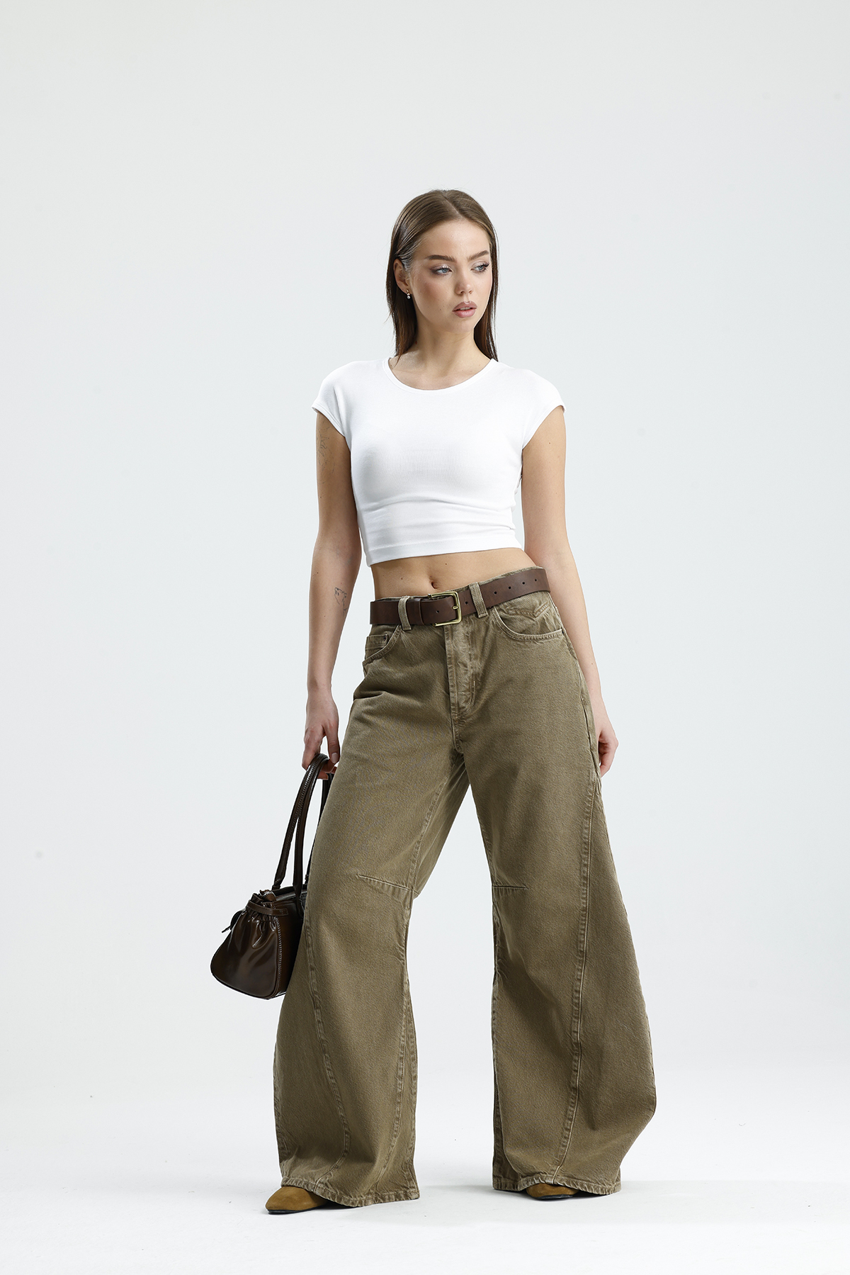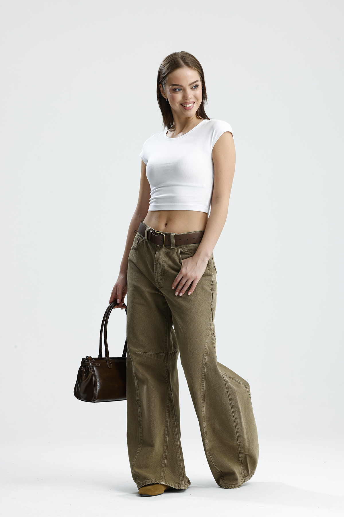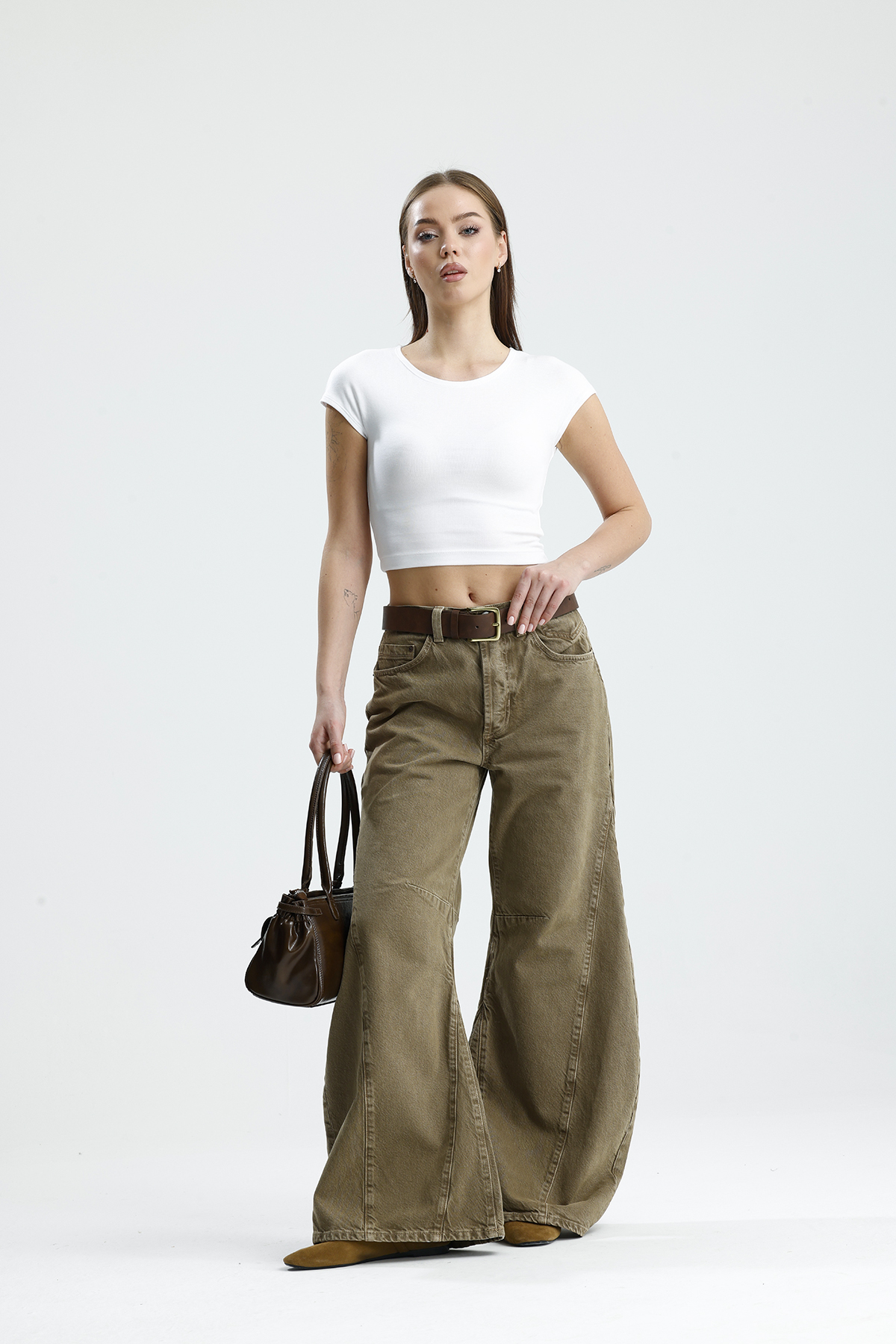 Wide Leg Dikiş Detaylı Denim Jean Pantolon