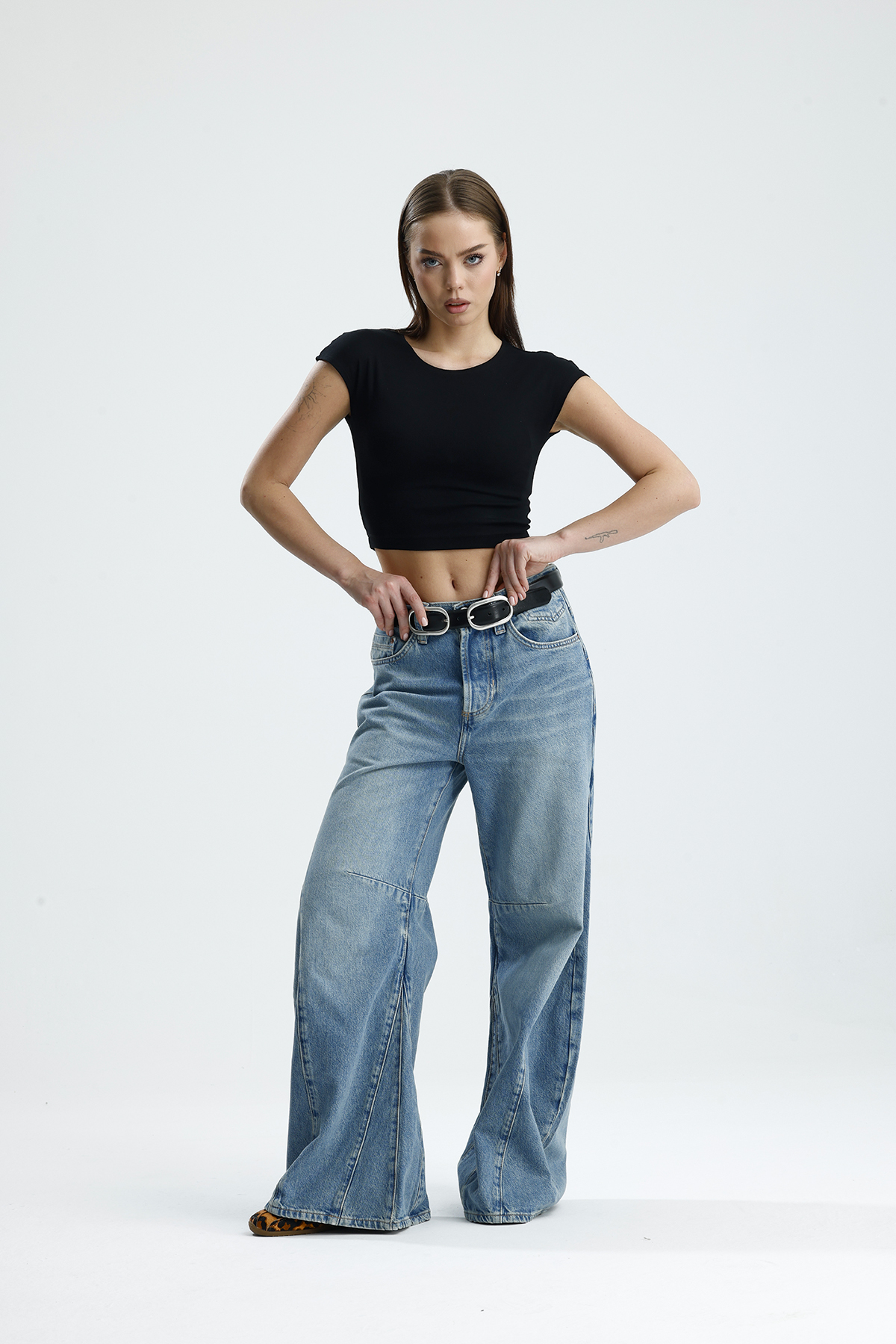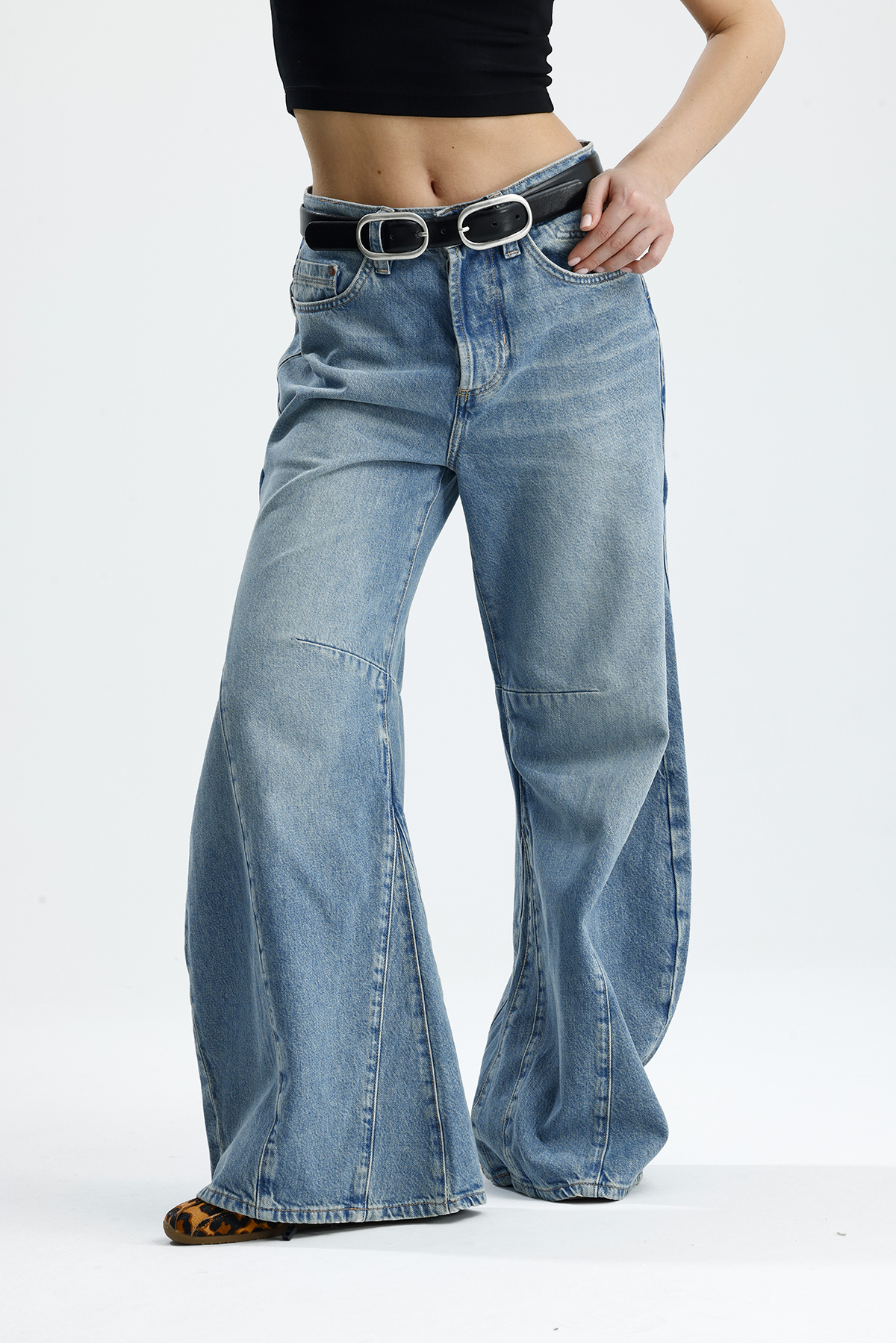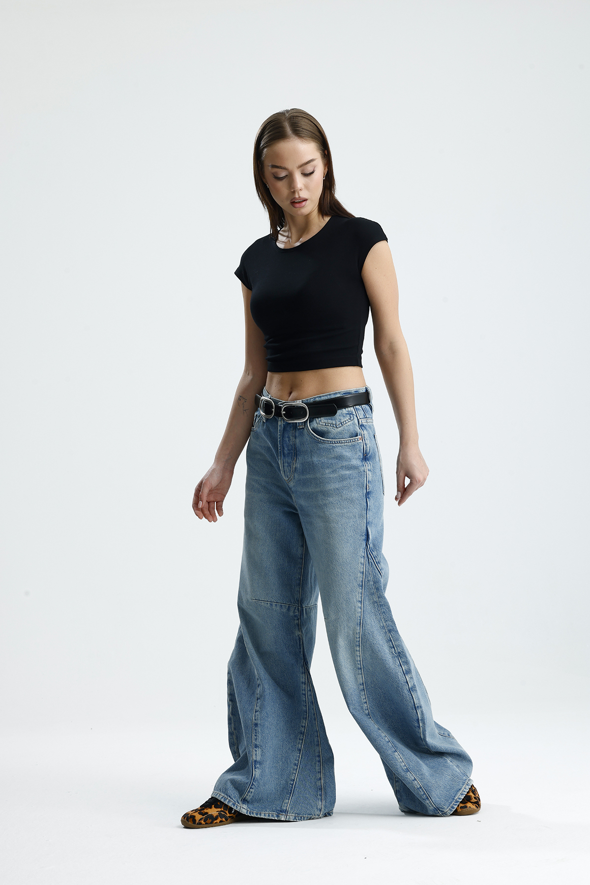 Wide Leg Dikiş Detaylı Denim Jean Pantolon