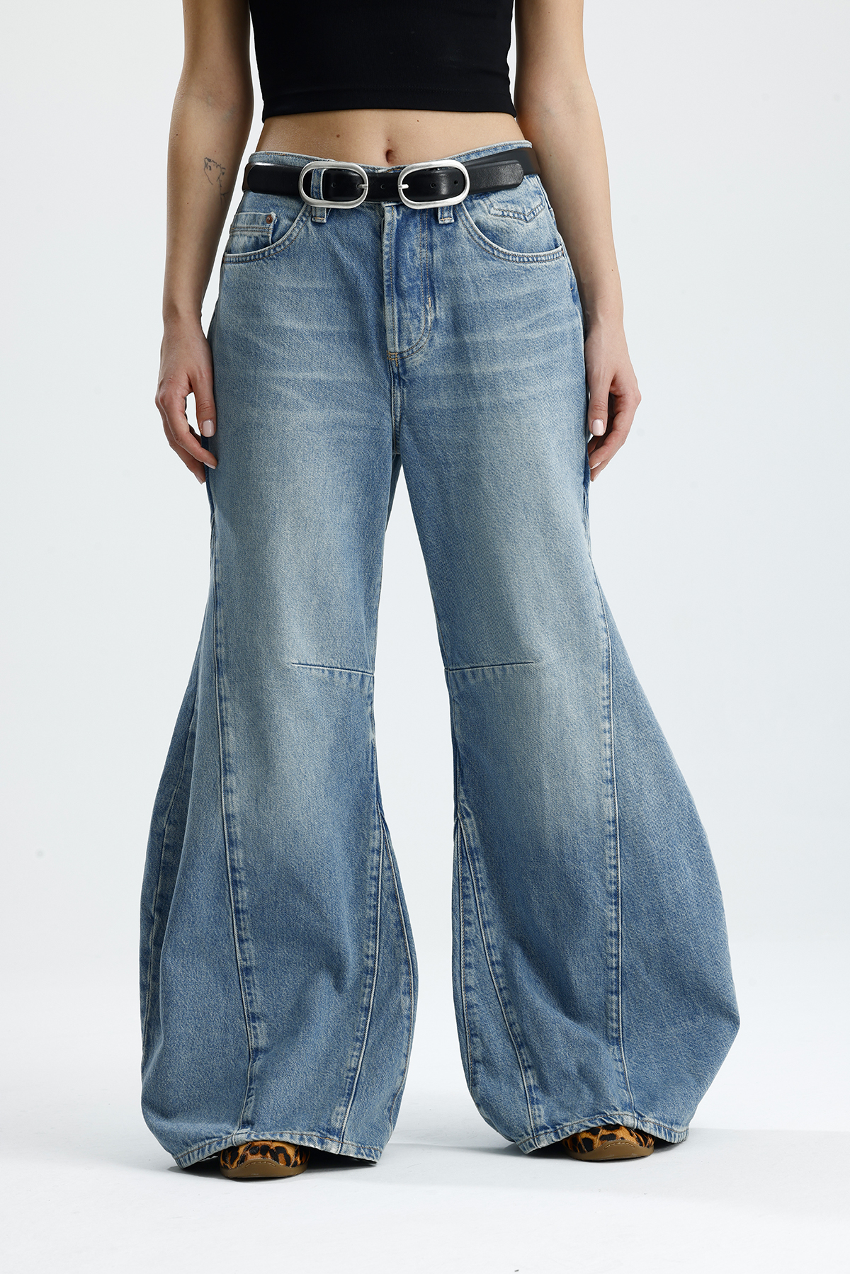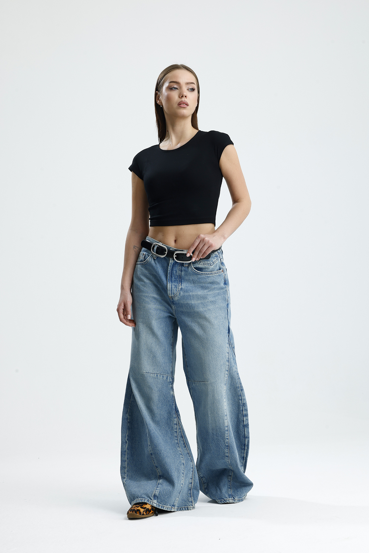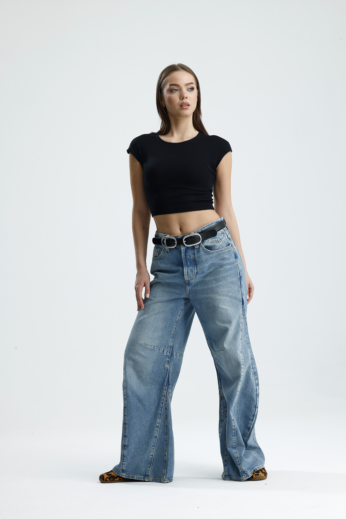 Wide Leg Dikiş Detaylı Denim Jean Pantolon